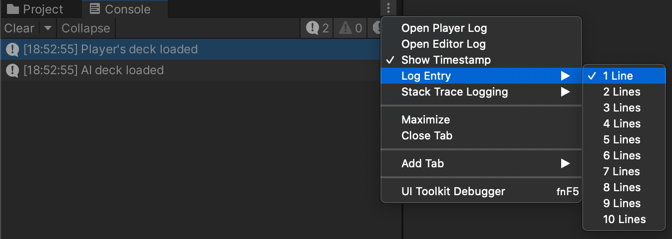 기본적으로 Console Log Entry는 두 줄로 표시됩니다. 하지만 간단히 한 줄로 표시하여 가독성을 높일 수 있습니다. 아래와 같이 하면 됩니다.
